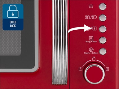 Child Lock Cuptorul cu microunde este prevazut cu o functie speciala de siguranta pentru copii, ce permite panoului de comanda sa fie „blocat”, astfel incat copiii sa nu il poata folosi accidental. Garanteaza siguranta absoluta in bucataria ta! | ![]() |
